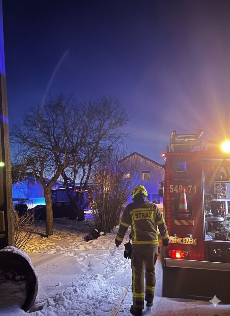 2.02.2026 – o godz. 16.56 – jednostka zadysponowana do pożaru budynku gospodarczego w Tczewskich Łąkach.