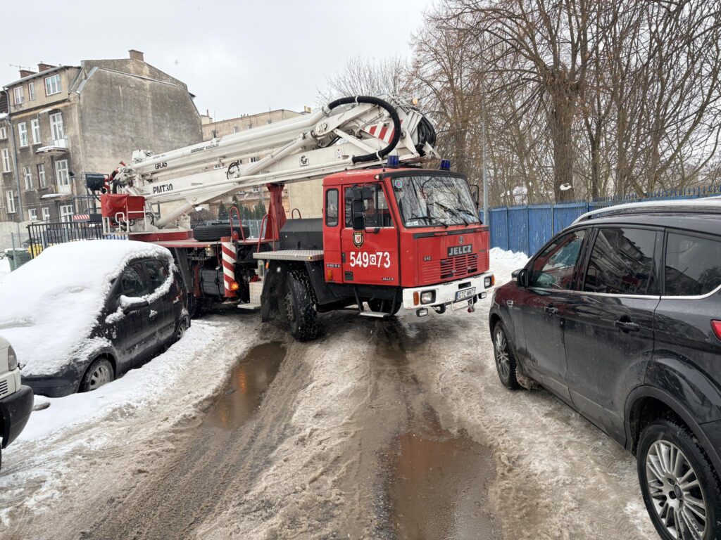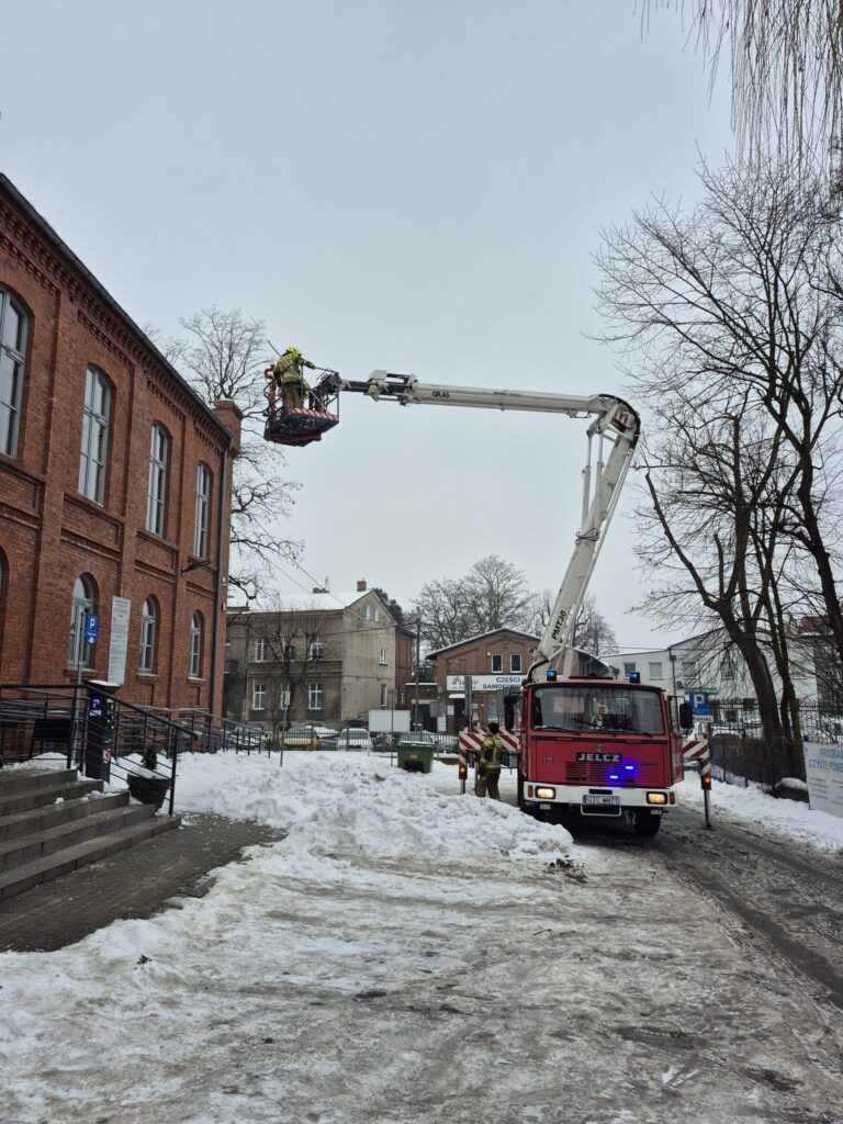 12.01.2026 – o godz. 15.41 – jednostka zadysponowana do usunięcia niebezpiecznie zwisających nawisów śnieżnych w Szkole Podstawowej nr 5.