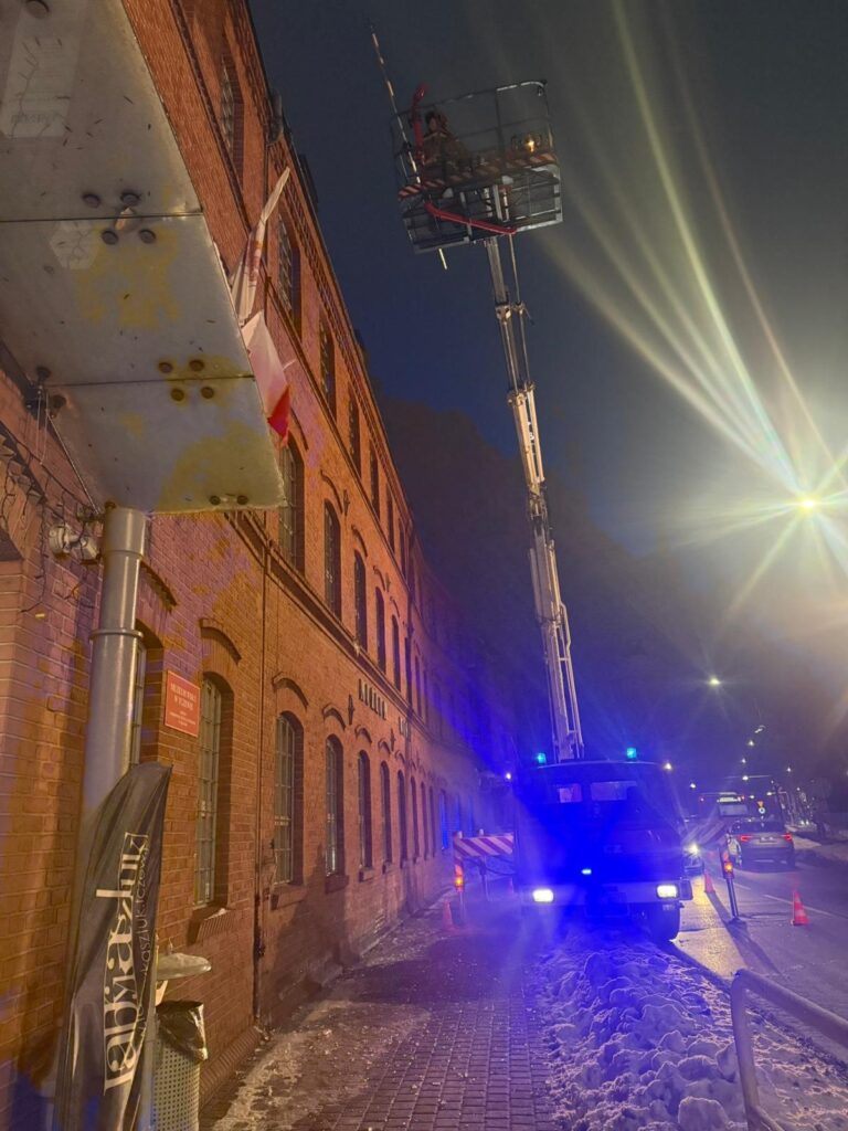 16.02.2026 – o godz.14.58 – jednostka zadysponowana do usunięcia sopli z budynku Fabryki Sztuk.